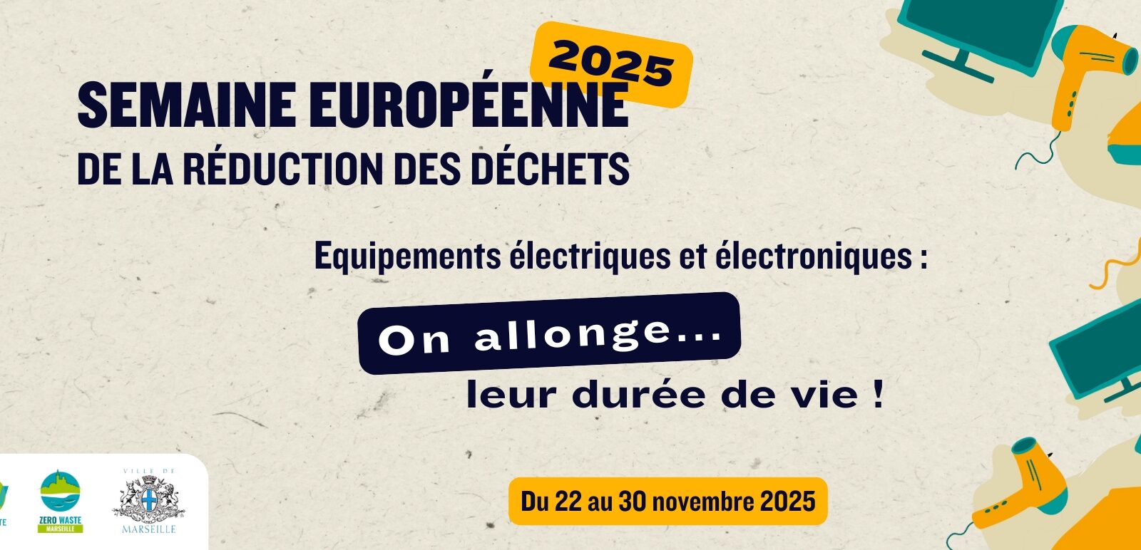 Rejoignez-nous pour la Semaine européenne de la réduction des déchets (SERD) du 22 au 30 novembre 2025. Zero Waste Marseille propose un programme ludique et pédagogique pour mieux comprendre l’impact des déchets et notamment les équipements électriques et électroniques.